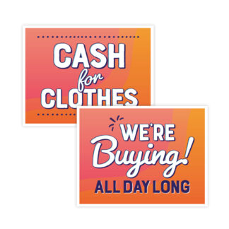Mannequin Signs: Cash for Clothes/We’re Buying All Day