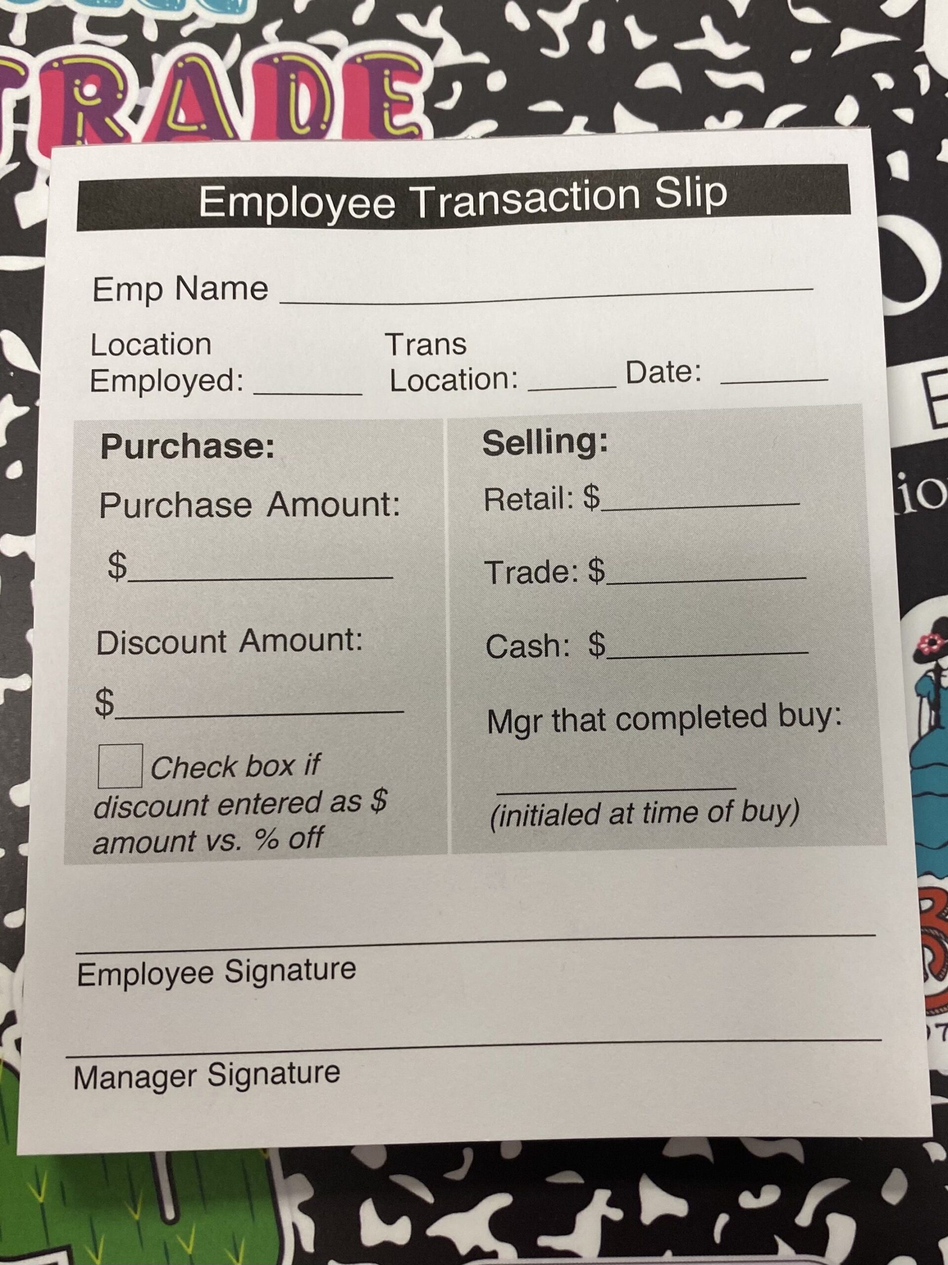 Employee Transaction Slip (5 PACK)